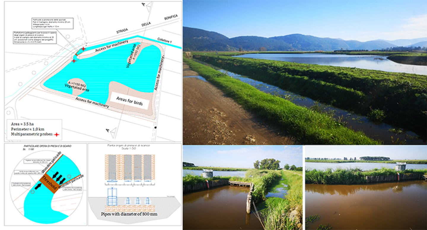 The “Autorita di Bacino Distrettuale dell’Appennino Settentrionale” (ADBS) is the authority that leads efforts to address these risks in a portion of the river basin, Massaciuccoli Lake, through the design and implementation of a pipeline and diversion channel which has been funded by the Ministry of the Environment and the Protection of the Territory and the Sea. The water supply through the diversion channel has been coupled with implementing several NBS techniques to mitigate the effects of climate change and simultaneously increase biodiversity and improve water quality.