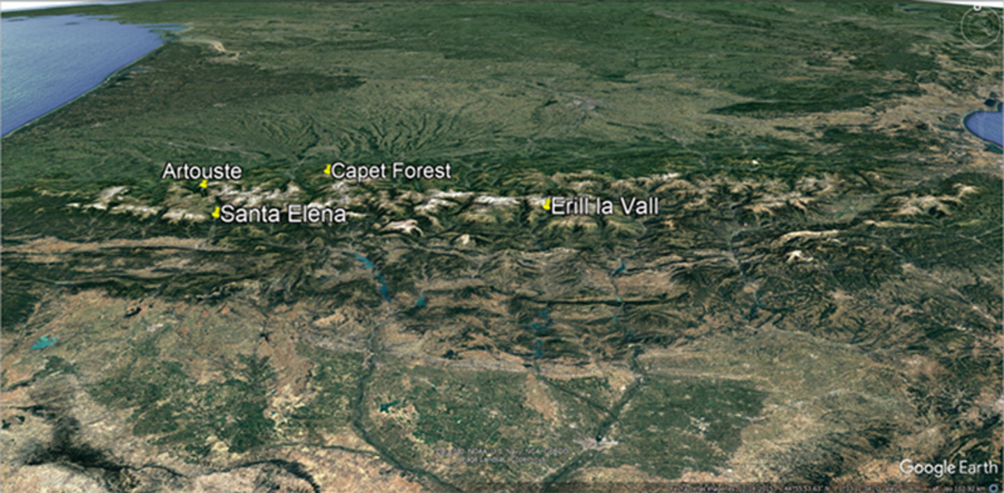 Location of the Pyrenean sites on the French and Spanish sides of the border (Source: in-house with an image from Google Earth)